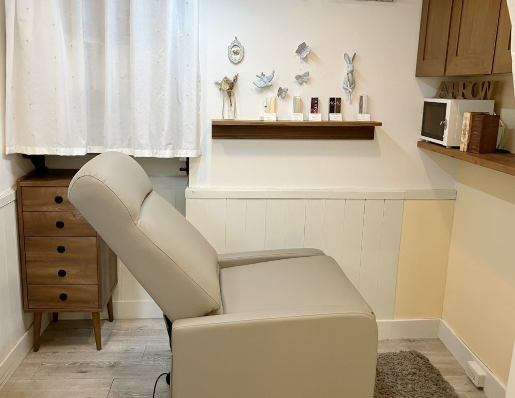 マツエク施術ベッドが変わりました! NEWS 2023/7/12 7月から施術ベッドが電動リクライニングチェアに変わりました♪♪ 腰にも負担のないよう、専用のクッションも装備されております! お足元にはステップもご用意しておりますので座りやすくなっております。 寝心地も良いとお客様からもご好評のチェアでゆっくりお寛ぎ下さいませ♪